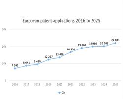 《2025年欧洲专利局技术看板》报告:中国在欧洲的专利申请量首次跃升至前三